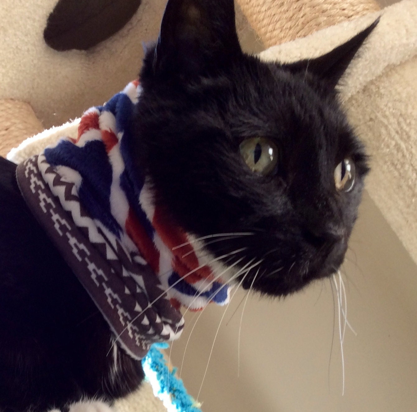 Slide Kittys collar through the holes in the cone and voila- your cat looks likes a TV satellite. Channel allows for quick and easy collar placement around the catheter. Im able to very quickly and efficiently remove the Kitty Kollar and gauze pad dab at the stoma with a bit of water to remove any crusty matter slip a new gauze around the tube and replace.
